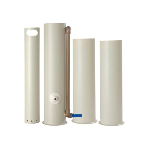 Equipamento indispensável em laboratórios, pois proporciona a lavagem de um grande número de pipetas de uma só vez. Produto fabricado em plástico PVC Rígido Branco, composto por quatro peças a seguir: